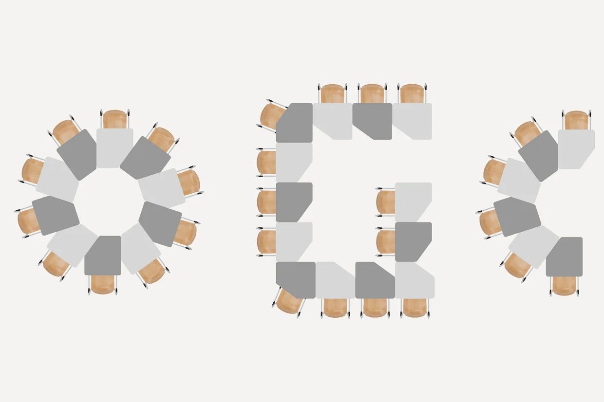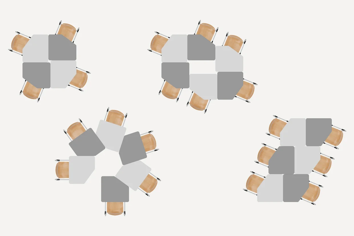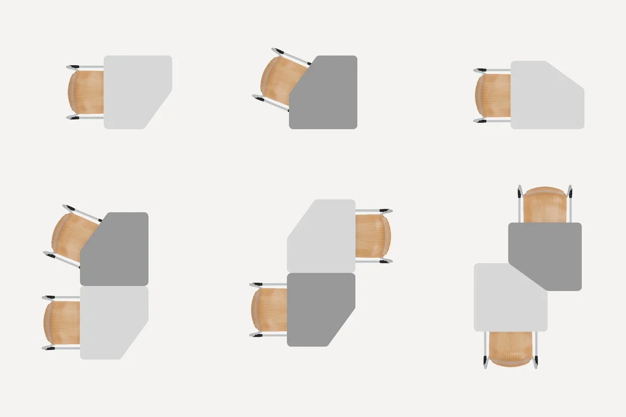 Modivy borðin bjóða uppá ótals uppröðunar möguleika með sinni einstöku lögun sem getur gert hver rými einstakt.