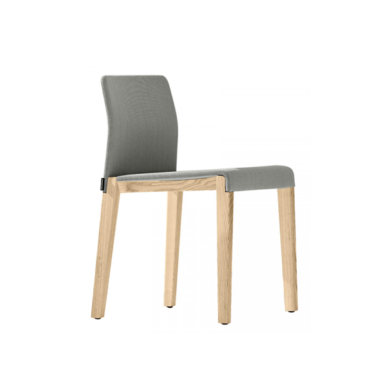 Wood is a defining feature of the collection, to the extent that it has been used for the seat as well, where the strip of wood between the seat and backrest is not just an aesthetic detail, but constitutes the bridge of the back legs and is, therefore, an integral part of the architectural construction. The wood chosen for the collection is ash, a sturdy, yet lightweight, flexible wood, with distinctive veining which makes each piece unique and one-of-a-kind.