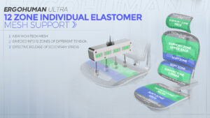 Netið í setu og baki er skipt í 12 mismunandi þægindastig