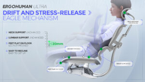Aðlagaðu hreyfinguna í stólnum að þinni þyngd til að hámarka stuðning stólsins við líkamann. Bakið og setan hreyfast í fullkominni fljótandi samhæfingu til að auka þægindi þín. Bakið getur hallað um allt að 138°