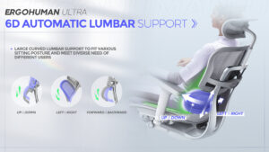 6D bakstuðningurinn er stillanlegur og tryggir hámarksþægindi fyrir mjóbakið