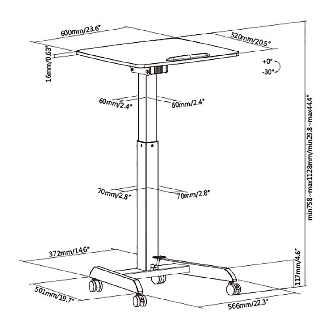Borðplata stillanleg í: 0° / 10° / 20° / 30° halla