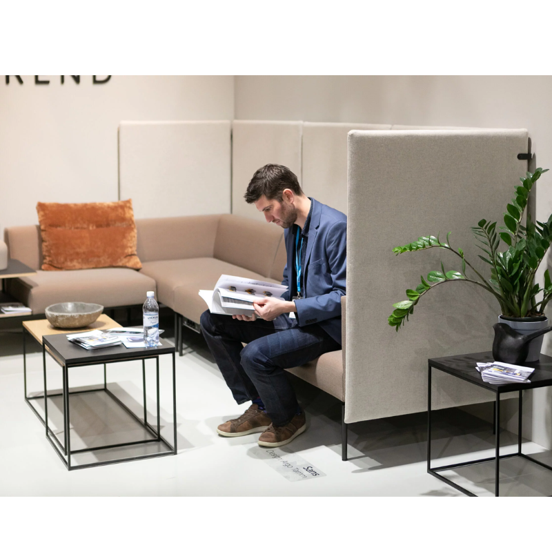The first impression is the most important! By decorating your Welcome Area with Sans, you show your guests that you are serious, but you also care about people. Soft upholstery and a thin metal plinth make it possible to bring coziness to even the tightest space.