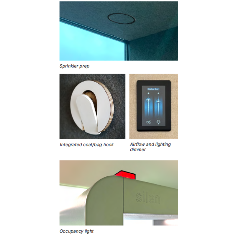 Silen Space 1 næðisrýmin eru fullkomlega hljóðeinangruð, þau eru ein af fáum á markaðnum sem komast í A flokk samkvæmt nýjum ISO staðli eða yfir 30 desibil. (ISO 23351-1)