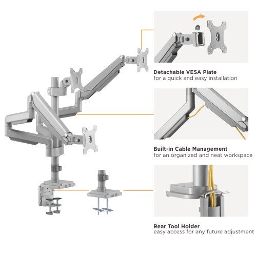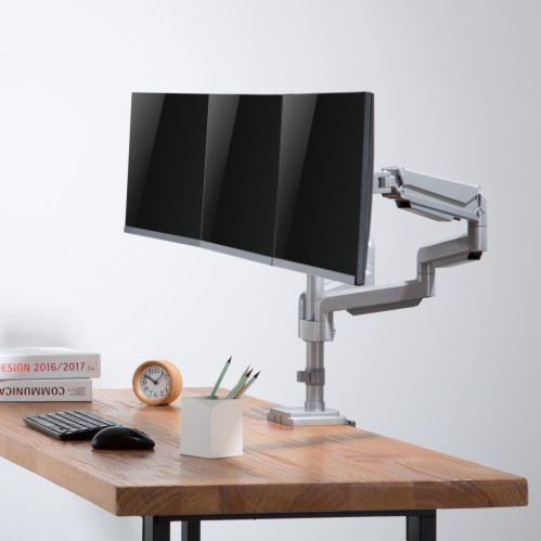 Stillanlegur skjáarmur fyrir þrjá skjái, á gaspumpu.