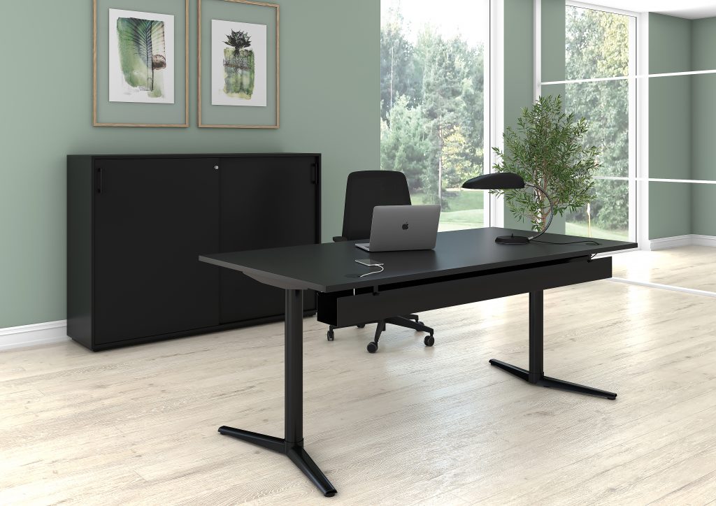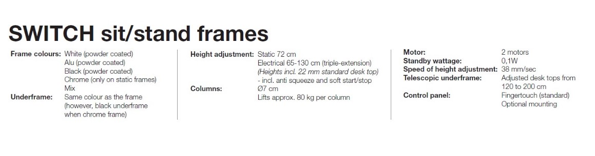 Switch rafmagnsborð eru með sívalningslaga súlu fótum.