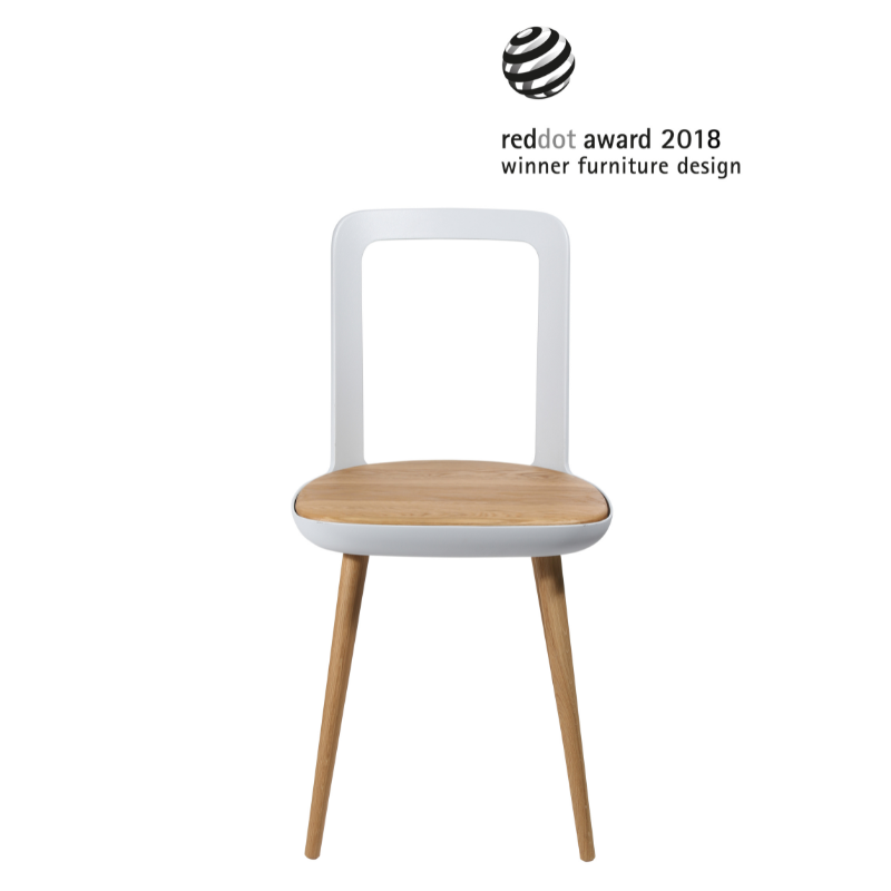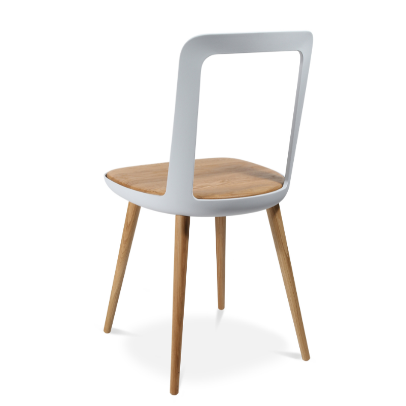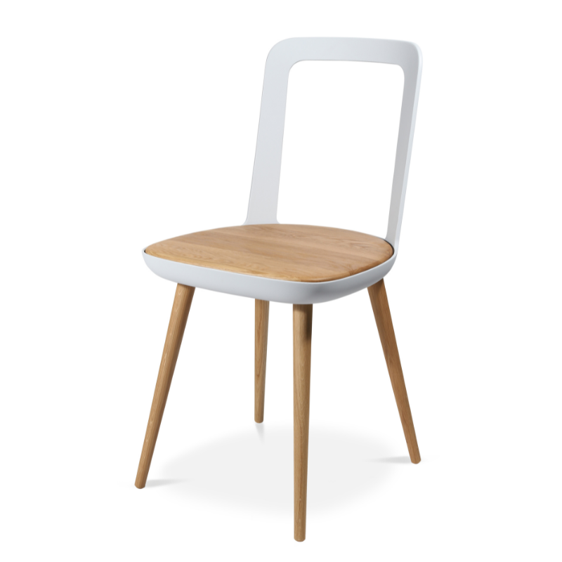 The W-2020 Chair formally recalls classic inn wooden chairs, but develops their expression and functionality.
